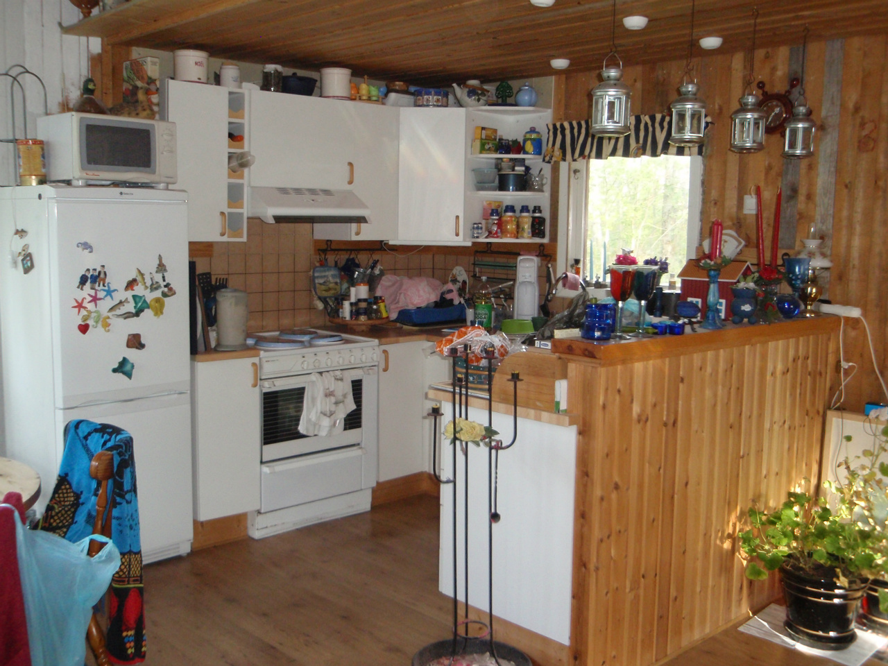 Kök med ugn , micro , handfat -kallt o varmt vatten, vattenkokare , kaffebryggare mm
